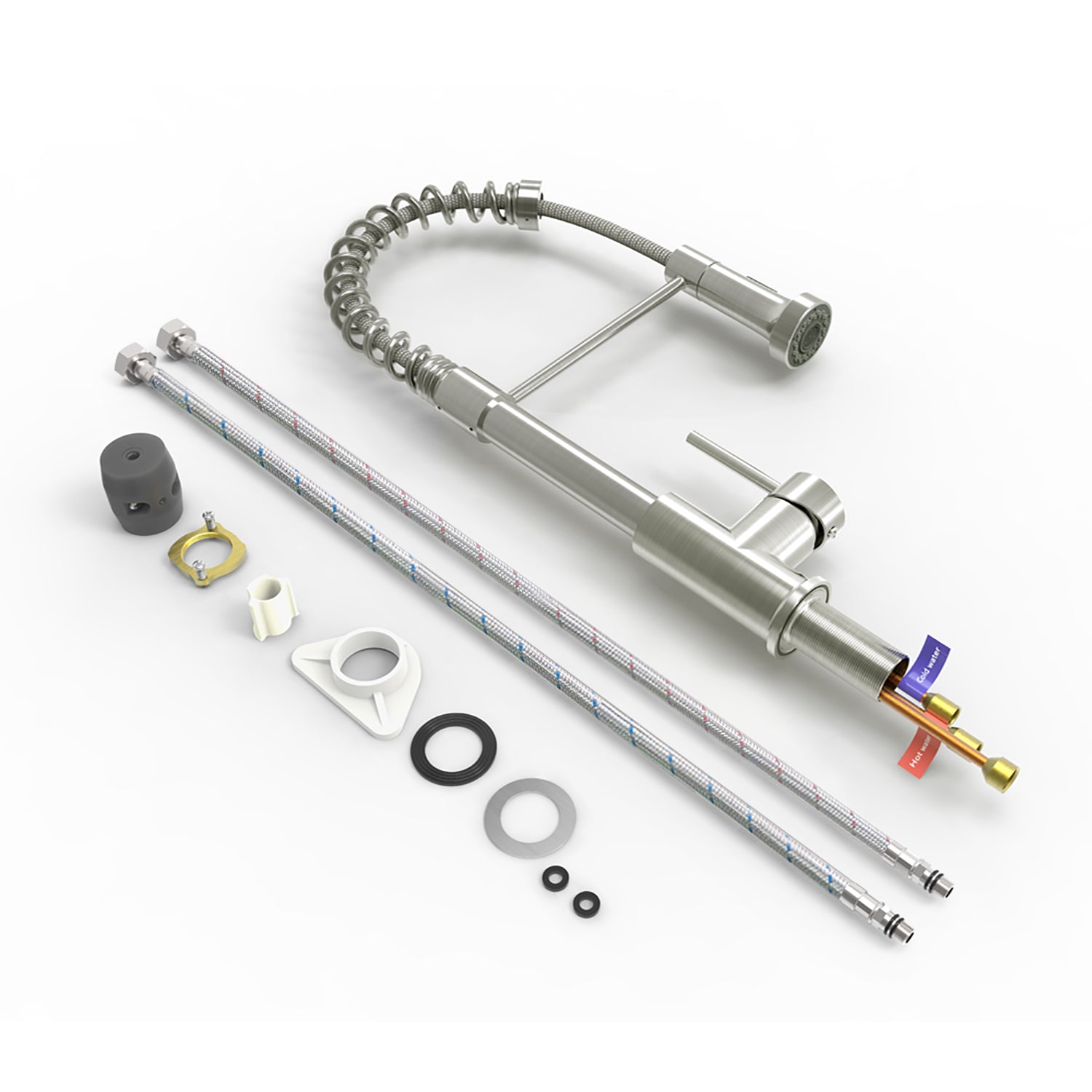 Kitchen Faucets with Pull Down Sprayer Lead Free Stainless Steel Single Handle, Pull Out Kitchen Sink Faucet Polished Brushed Nickel. Inspired by the design of professional kitchens, this pull out kitchen faucet will bring to life your inner chef. Its high arch and unique exposed-spring design exceptional control and flexibility.